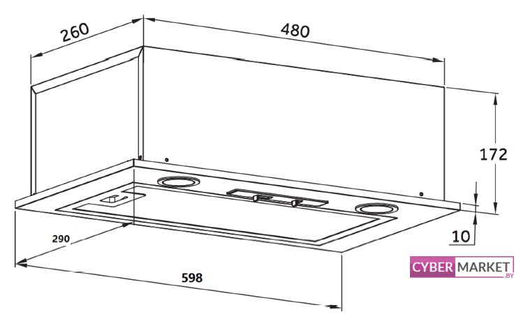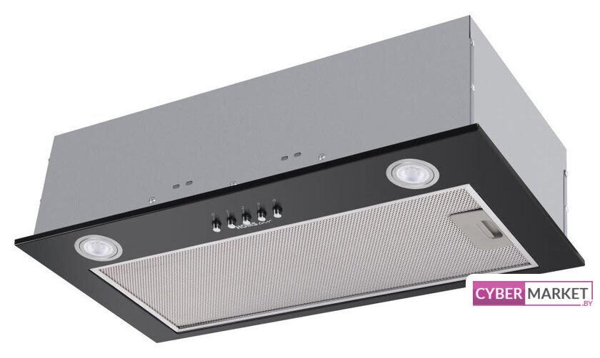конструкция телескопическая, монтаж для встраивания, ширина 59.5 см, управление механическое/кнопочное, производительность мотора 600 м³/ч, цвет нержавеющая сталь/черный
