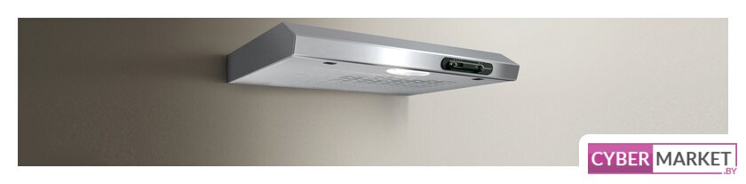 конструкция плоская, монтаж настенный/для встраивания, управление кнопочное, производительность вытяжки 166 м³/ч, производительность мотора 220 м³/ч, ширина 60 см