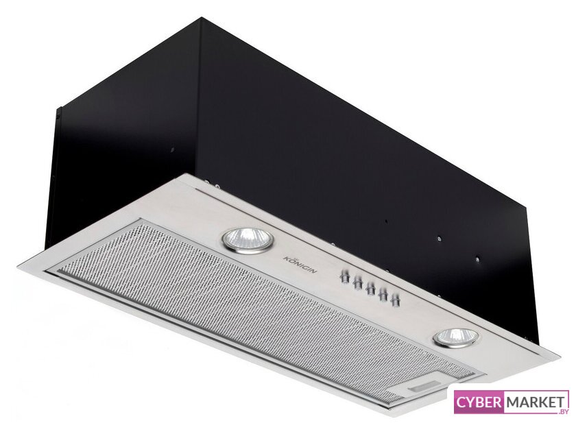 конструкция скрытая, монтаж для встраивания, ширина 59.8 см, управление механическое/кнопочное, производительность мотора 850 м³/ч, цвет белый