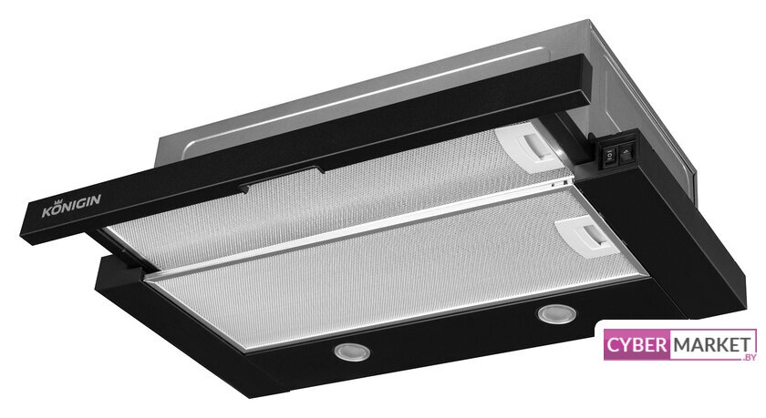 конструкция наклонная, монтаж настенный, ширина 59.8 см, управление поворотный переключатель, производительность мотора 950 м³/ч, цвет черный