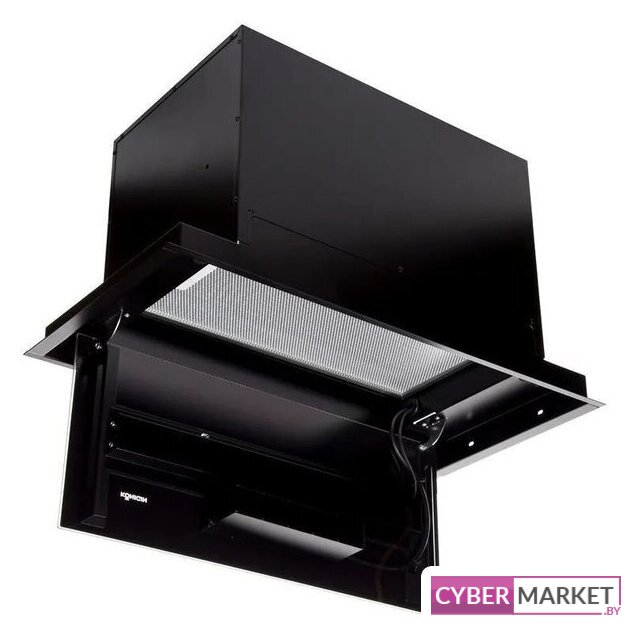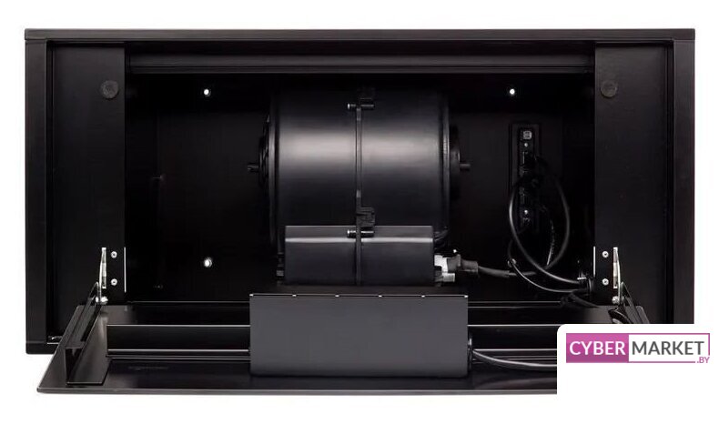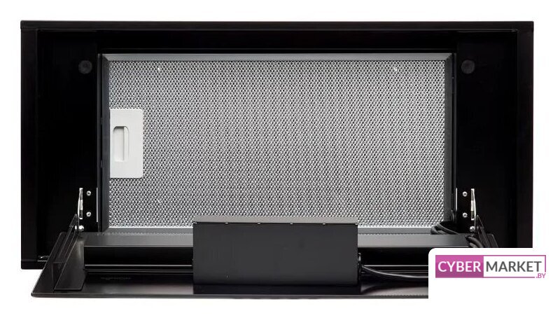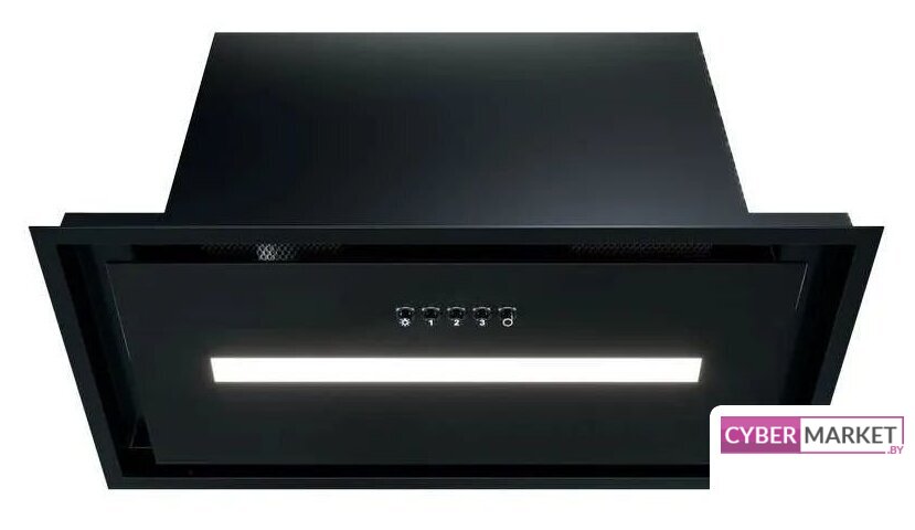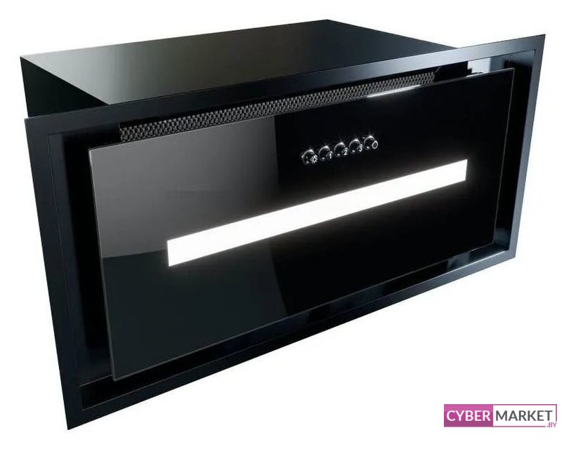 конструкция телескопическая, монтаж для встраивания, ширина 59.5 см, управление слайдерное/сенсорное, производительность мотора 900 м³/ч, цвет черный