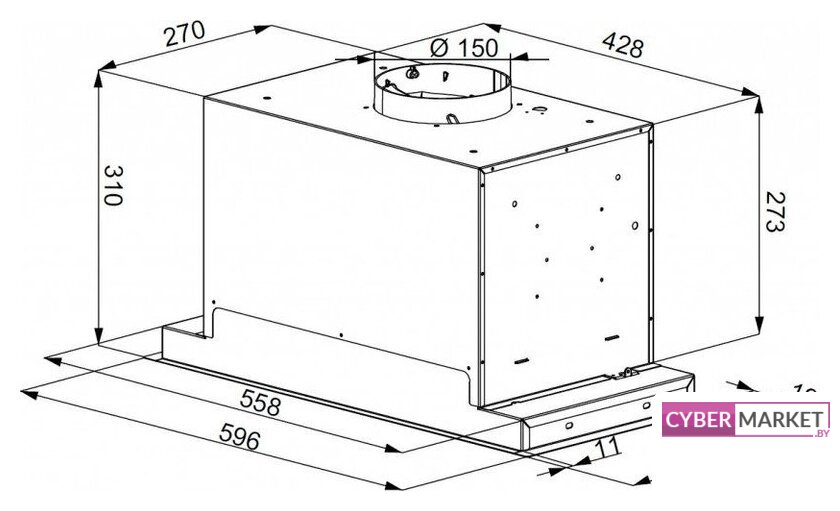 конструкция скрытая, монтаж настенный, ширина 59.6 см, управление электронное/кнопочное, производительность мотора 900 м³/ч, цвет нержавеющая сталь