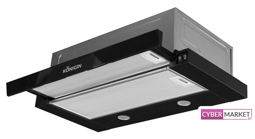конструкция телескопическая, монтаж для встраивания, ширина 50 см, управление механическое/кнопочное, производительность мотора 850 м³/ч, цвет черный