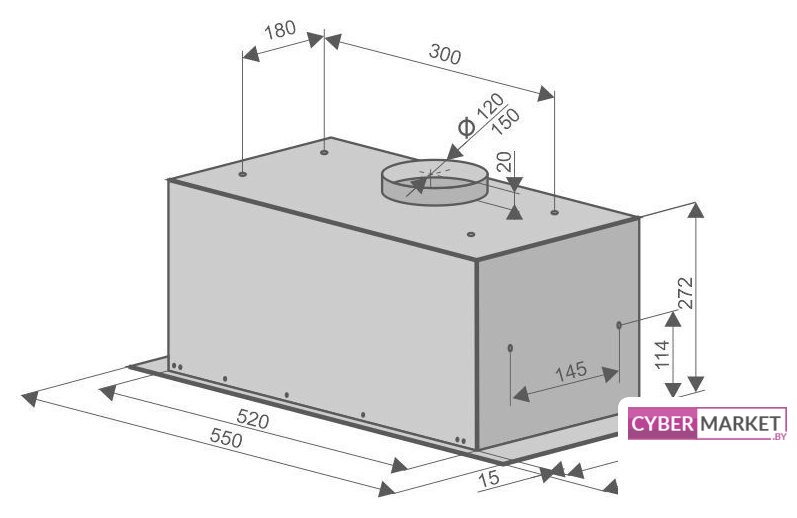 конструкция скрытая, монтаж для встраивания, ширина 53 см, управление электронное/кнопочное/дистанционное, производительность мотора 1250 м³/ч, цвет белый