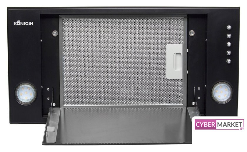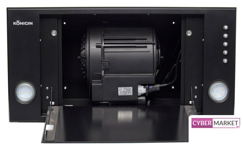 конструкция скрытая, монтаж для встраивания, ширина 53 см, управление электронное/кнопочное/жестами/дистанционное, производительность мотора 1250 м³/ч, цвет черный