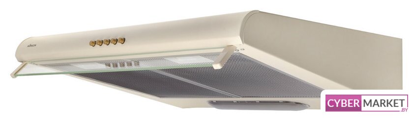 конструкция плоская, монтаж настенный, ширина 49.6 см, управление механическое/кнопочное, производительность мотора 455 м³/ч, цвет слоновая кость