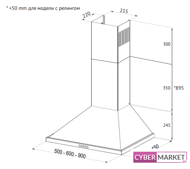 конструкция телескопическая, монтаж для встраивания, управление механическое/кнопочное, производительность мотора 650 м³/ч, ширина 89.8 см