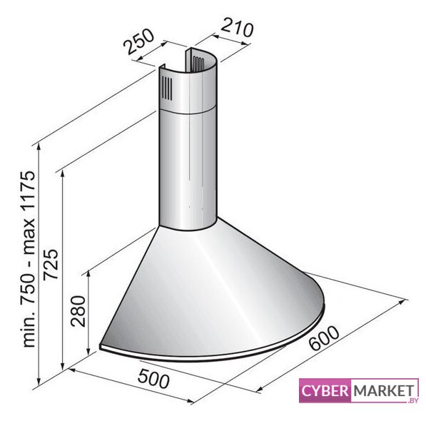 конструкция коробчатая, монтаж настенный, ширина 35.15 см, управление сенсорное, производительность мотора 900 м³/ч, цвет черный