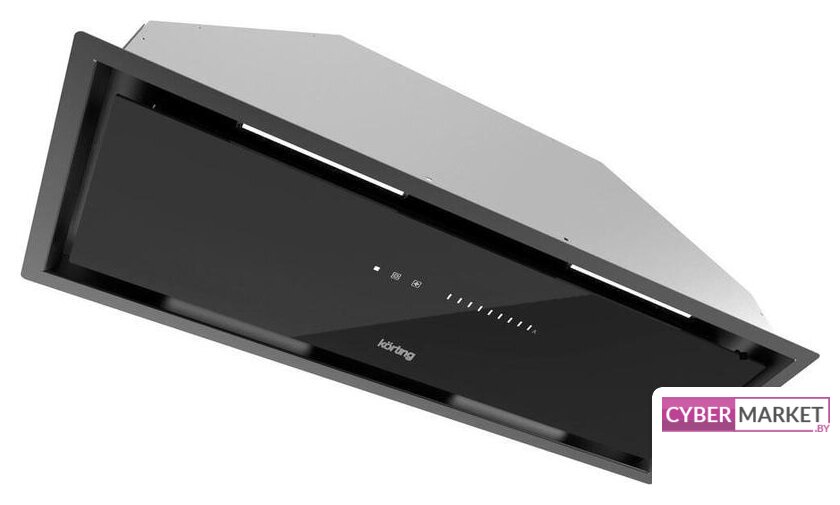 конструкция коробчатая, монтаж настенный, ширина 38 см, управление механическое/кнопочное, производительность мотора 1000 м³/ч, цвет черный