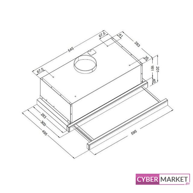 конструкция телескопическая, монтаж для встраивания, ширина 60 см, управление механическое/кнопочное, производительность мотора 520 м³/ч, цвет белый