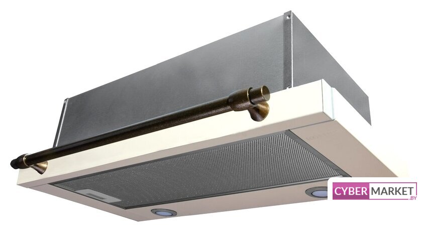 конструкция скрытая, монтаж для встраивания, ширина 79.5 см, управление механическое/кнопочное, производительность мотора 950 м³/ч, цвет слоновая кость
