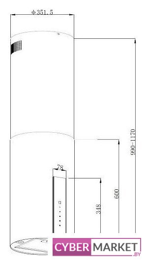конструкция Т-образная, монтаж настенный, ширина 90 см, управление сенсорное, производительность мотора 800 м³/ч, цвет нержавеющая сталь