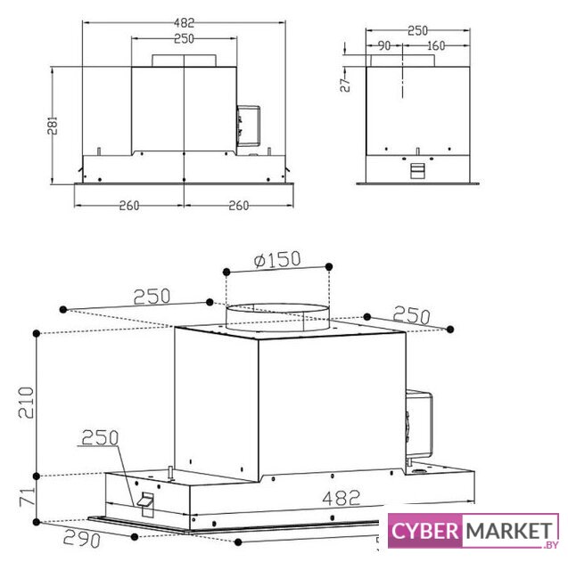 конструкция Т-образная, монтаж настенный, ширина 60 см, управление кнопочное, производительность мотора 650 м³/ч, цвет нержавеющая сталь