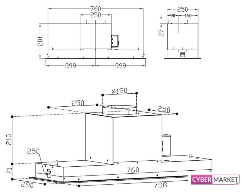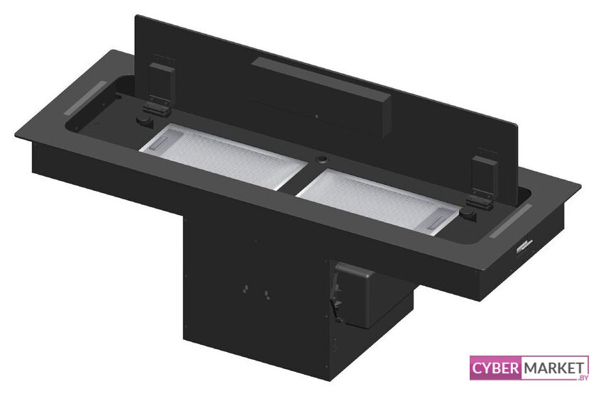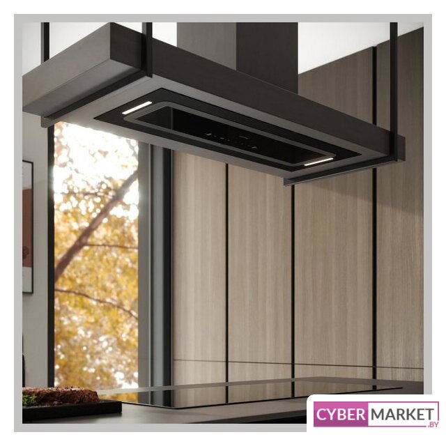 конструкция коробчатая, монтаж настенный, ширина 35 см, управление электронное/кнопочное, производительность мотора 1000 м³/ч, цвет черный