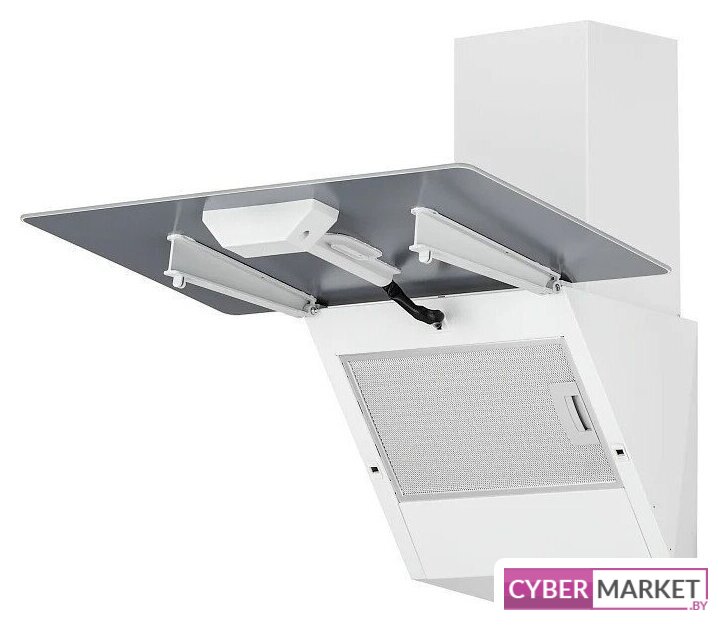 конструкция наклонная, монтаж настенный, ширина 60 см, управление механическое/кнопочное, производительность мотора 500 м³/ч, цвет белый