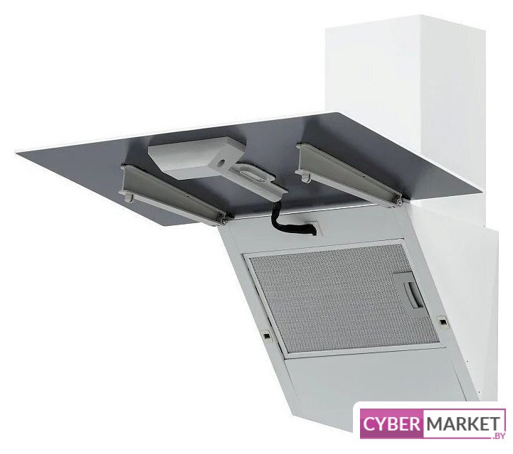 конструкция скрытая, монтаж для встраивания, ширина 52.5 см, управление механическое/кнопочное, производительность вытяжки 1000 м³/ч, производительность мотора 1000 м³/ч, цвет белый