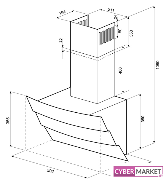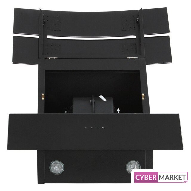 конструкция наклонная, монтаж настенный, ширина 59.6 см, управление сенсорное, производительность мотора 863 м³/ч, цвет черный