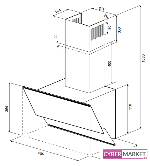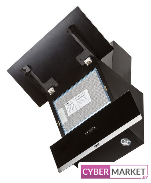 конструкция наклонная, монтаж настенный, ширина 59.6 см, управление механическое/кнопочное, производительность мотора 500 м³/ч, цвет белый
