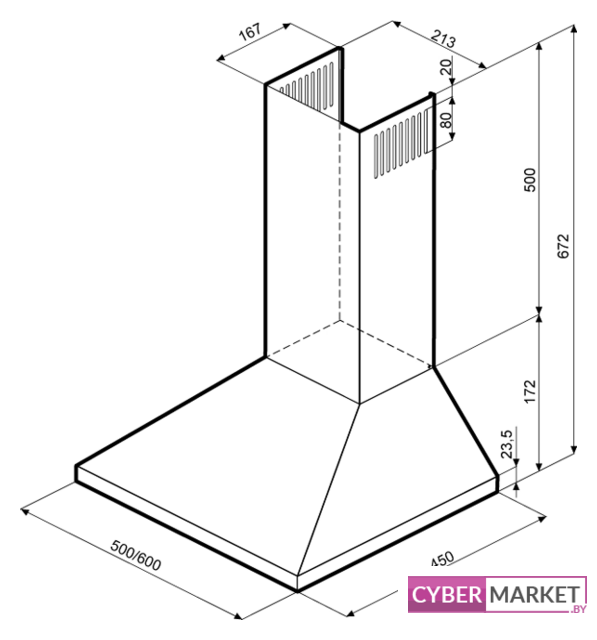 конструкция наклонная, монтаж настенный, ширина 59.5 см, управление сенсорное, производительность мотора 550 м³/ч, цвет белый