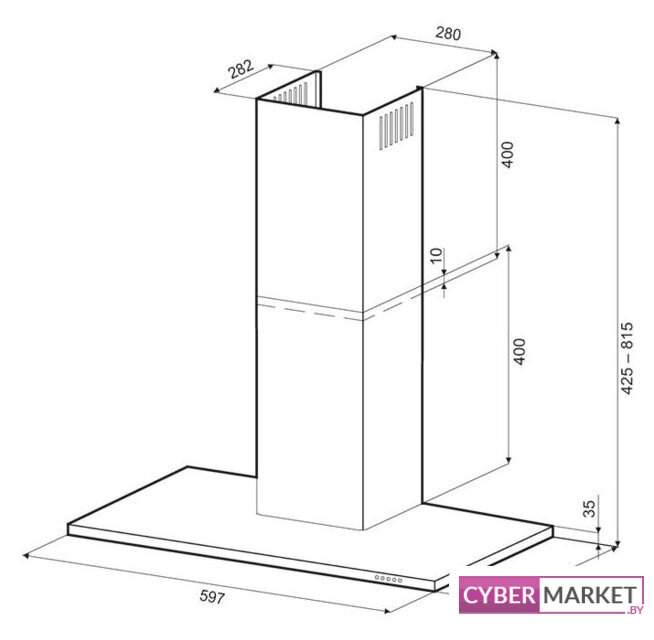 конструкция купольная, монтаж настенный, управление электронное/кнопочное, производительность мотора 650 м³/ч, ширина 90 см