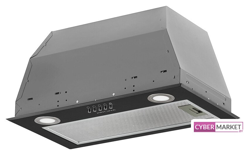 конструкция скрытая, монтаж для встраивания, ширина 52 см, управление механическое/кнопочное, производительность мотора 650 м³/ч, цвет серый