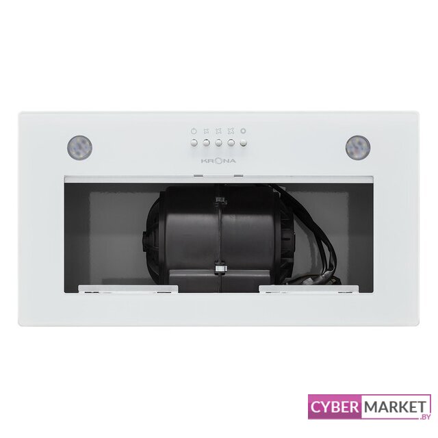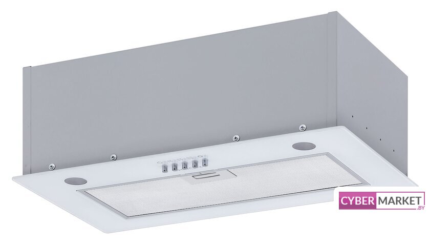 конструкция скрытая, монтаж для встраивания, ширина 60 см, управление механическое/кнопочное, производительность вытяжки 650 м³/ч, цвет белый