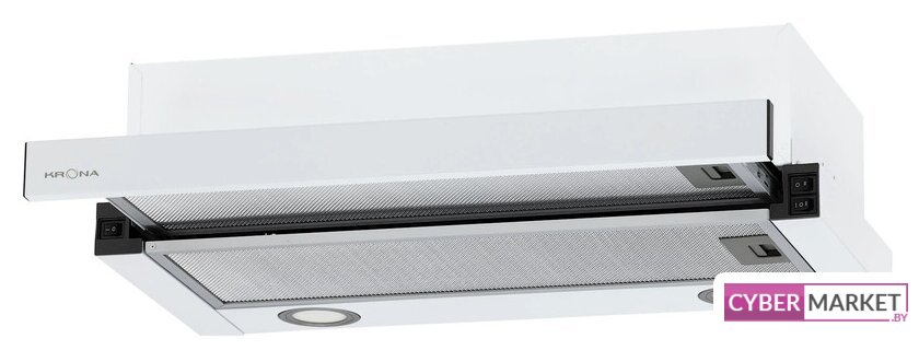 конструкция телескопическая, монтаж для встраивания, ширина 60 см, управление механическое/слайдерное, производительность мотора 520 м³/ч, цвет белый