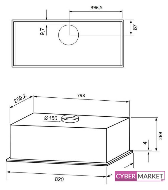 конструкция Т-образная, монтаж настенный, ширина 59.7 см, управление механическое/кнопочное, производительность мотора 790 м³/ч, цвет черный