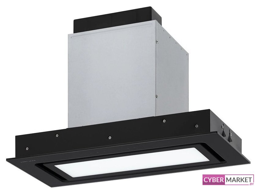 конструкция скрытая, монтаж для встраивания, ширина 73 см, управление электронное/кнопочное/дистанционное, производительность мотора 1250 м³/ч, цвет черный
