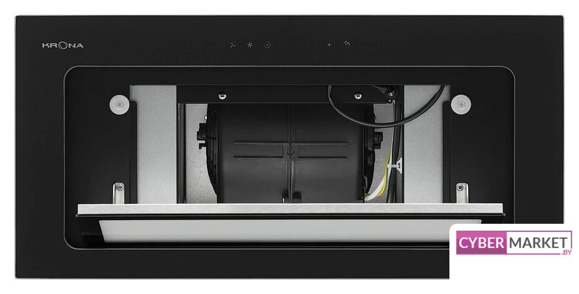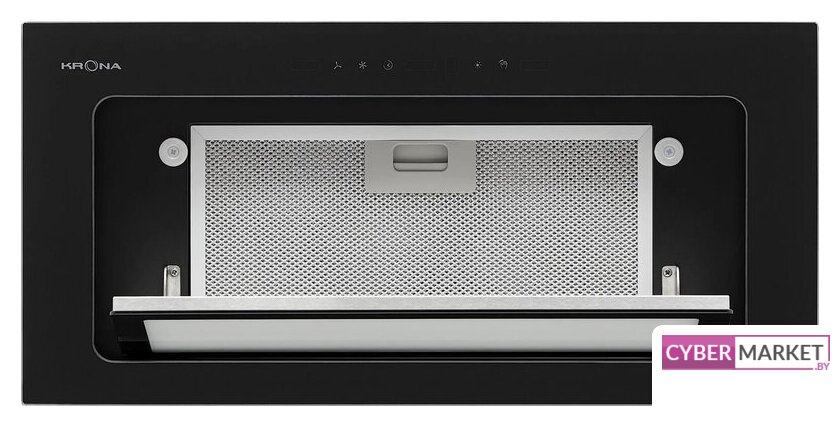 конструкция скрытая, монтаж для встраивания, ширина 52 см, управление сенсорное, производительность мотора 1200 м³/ч, цвет черный