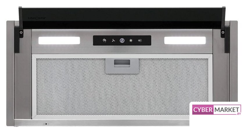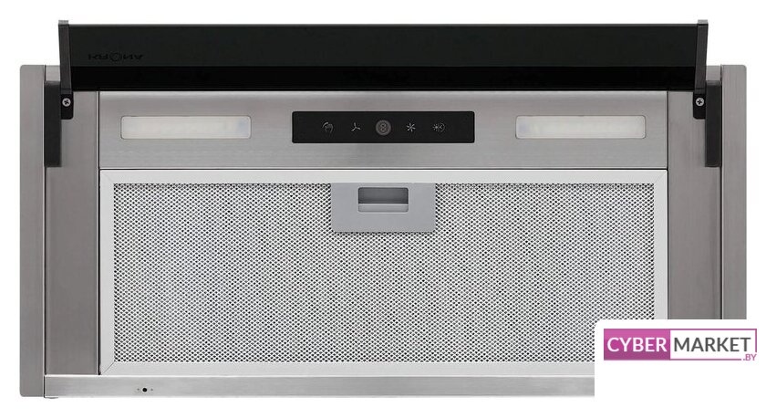 конструкция скрытая, монтаж для встраивания, ширина 72 см, управление сенсорное/жестами, производительность мотора 900 м³/ч, цвет черный