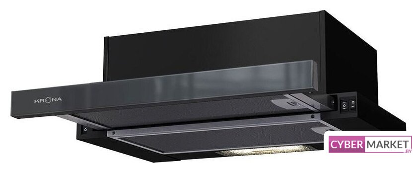 конструкция скрытая, монтаж для встраивания, ширина 60 см, управление механическое/кнопочное, производительность вытяжки 400 м³/ч, цвет черный
