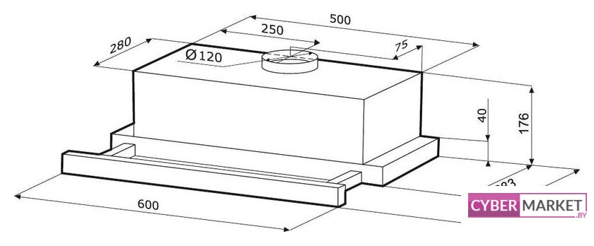 конструкция скрытая, монтаж для встраивания, ширина 60 см, управление механическое/кнопочное, производительность мотора 800 м³/ч, цвет белый