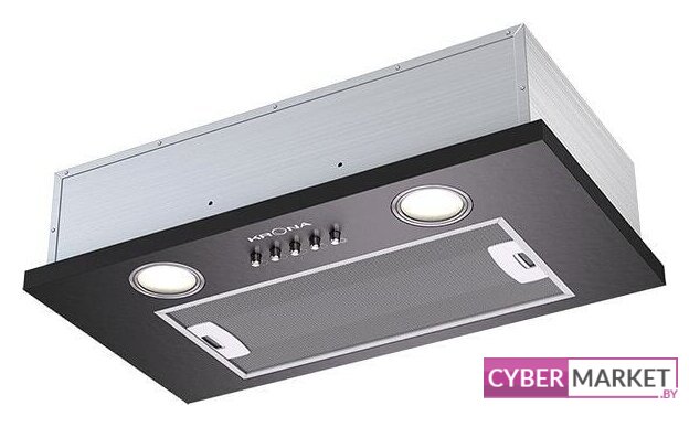 конструкция скрытая, монтаж для встраивания, ширина 52.5 см, управление механическое/кнопочное, производительность мотора 550 м³/ч, цвет черный