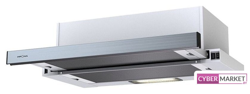 конструкция скрытая, монтаж для встраивания, ширина 54.6 см, управление механическое/кнопочное, производительность вытяжки 800 м³/ч, цвет белый