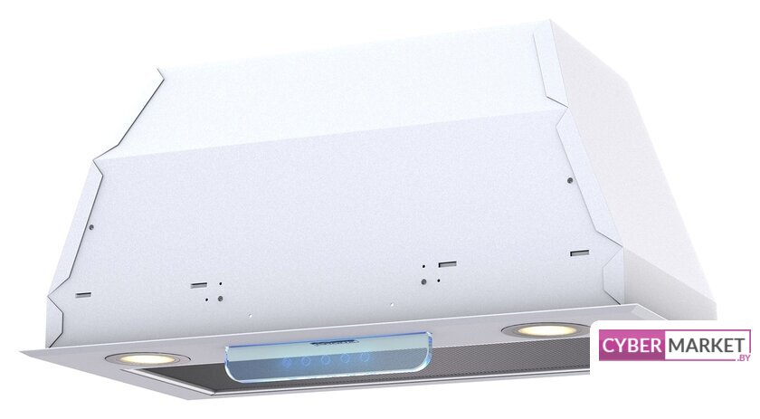 конструкция скрытая, монтаж для встраивания, ширина 59.8 см, управление механическое/кнопочное, производительность мотора 1150 м³/ч, цвет белый