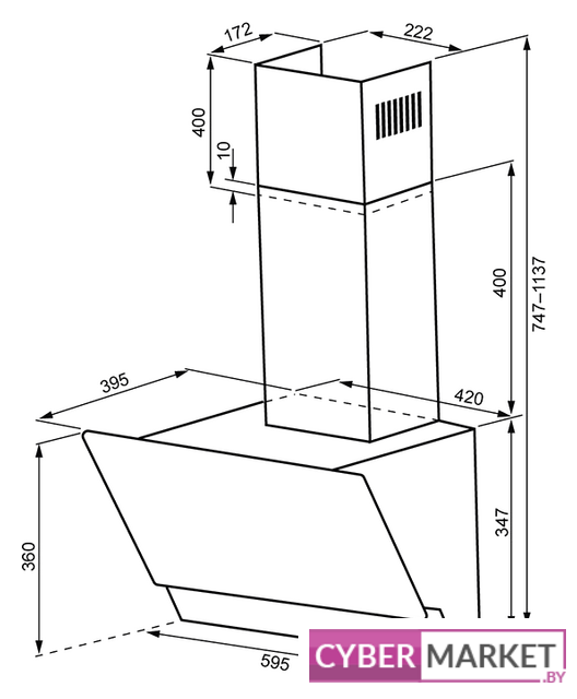 | Комплектация | 1. Корпус вытяжки с декоративным стеклом в сборе – 1 шт.2. Декоративный короб воздуховода вытяжки – 2 шт.3. Антивозвратный клапан - 1 шт.4. Комплект крепежа вытяжки к стене – 1 упаковка.5. Инструкция – 1 шт |