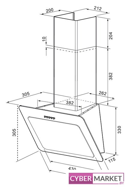 конструкция наклонная, монтаж настенный, ширина 60 см, управление механическое/кнопочное, производительность мотора 850 м³/ч, цвет нержавеющая сталь/черный
