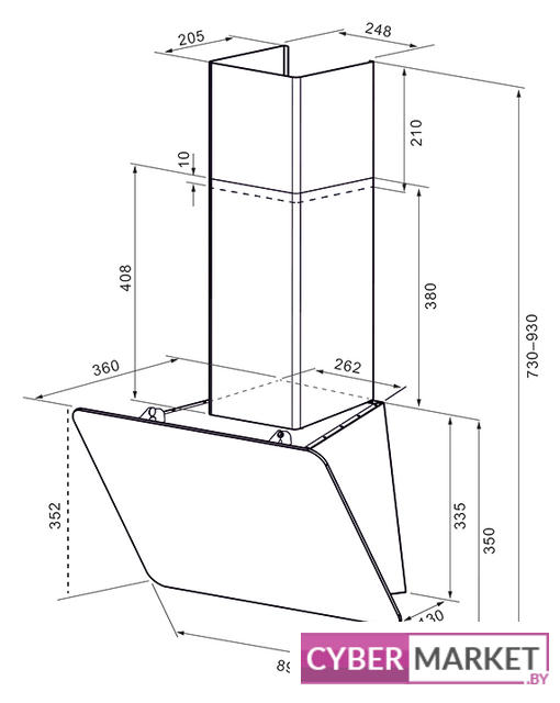 конструкция наклонная, монтаж настенный, ширина 60 см, управление сенсорное, производительность мотора 1050 м³/ч, цвет белый