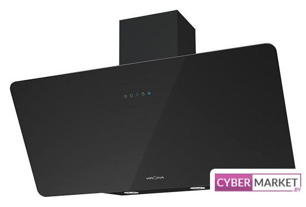 конструкция наклонная, монтаж настенный, ширина 90 см, управление сенсорное, производительность вытяжки 1000 м³/ч, производительность мотора 1000 м³/ч, цвет черный