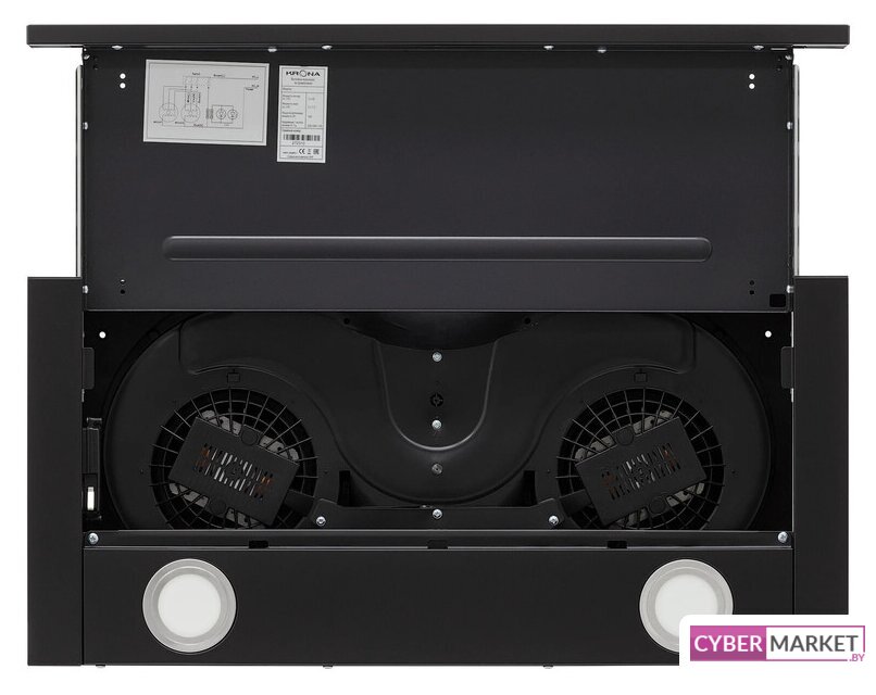 конструкция скрытая, монтаж для встраивания, ширина 59.6 см, управление механическое/кнопочное, производительность мотора 1050 м³/ч, цвет белый