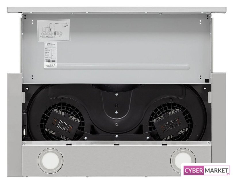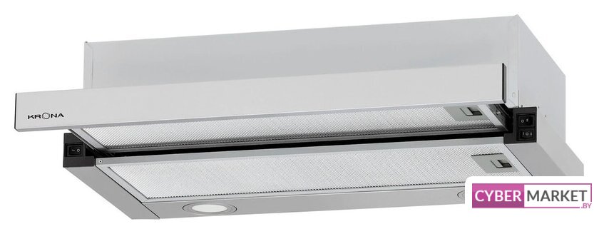 конструкция скрытая, монтаж для встраивания, ширина 52 см, управление механическое/кнопочное, производительность мотора 1000 м³/ч, цвет нержавеющая сталь