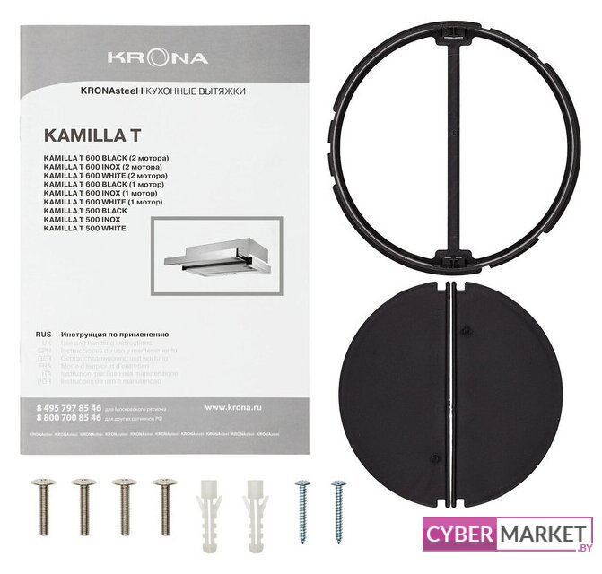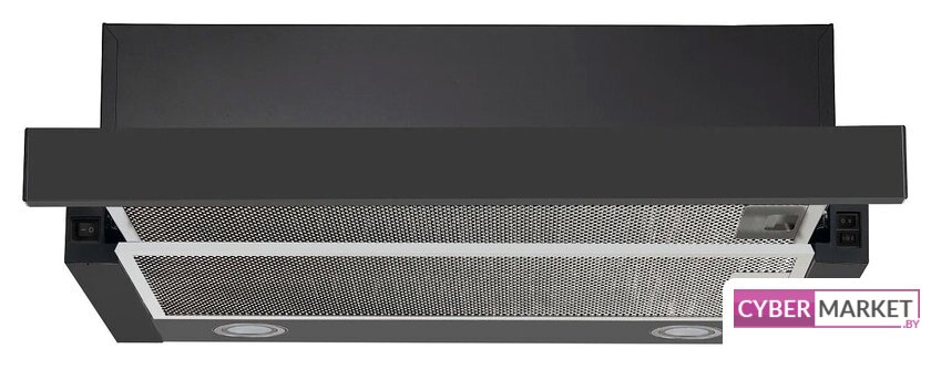 конструкция телескопическая, монтаж для встраивания, ширина 59.5 см, управление механическое, производительность мотора 720 м³/ч, цвет черный
