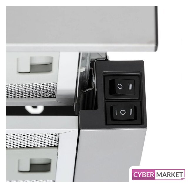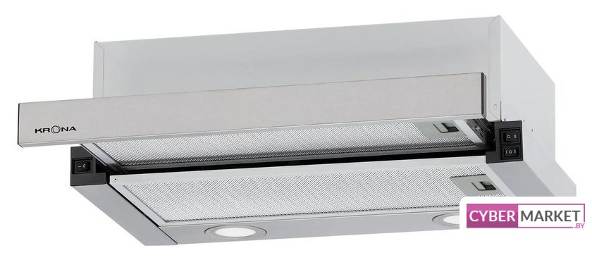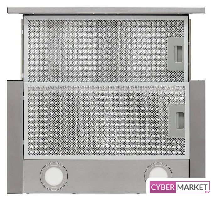 конструкция телескопическая, монтаж для встраивания, ширина 59.7 см, управление механическое/кнопочное, производительность мотора 660 м³/ч, цвет белый