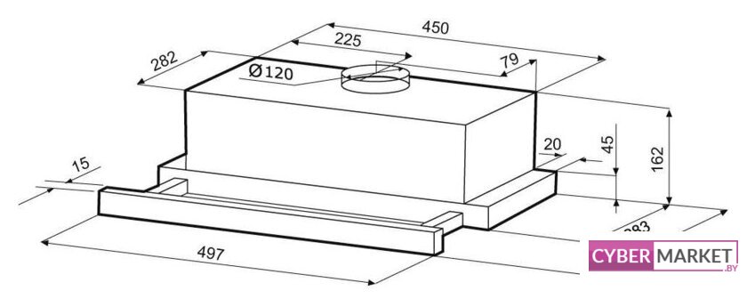 конструкция плоская, монтаж настенный, ширина 50 см, управление механическое/слайдерное, производительность вытяжки 160 м³/ч, производительность мотора 420 м³/ч, цвет черный