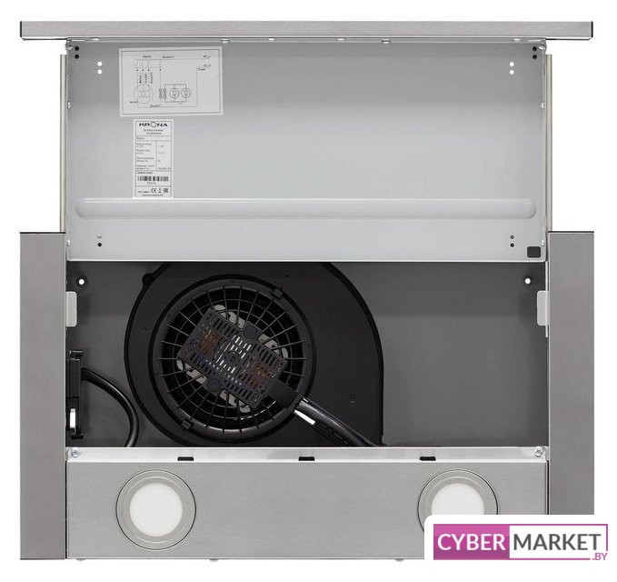конструкция скрытая, монтаж для встраивания, ширина 40 см, управление механическое/кнопочное, производительность вытяжки 700 м³/ч, производительность мотора 850 м³/ч, цвет белый