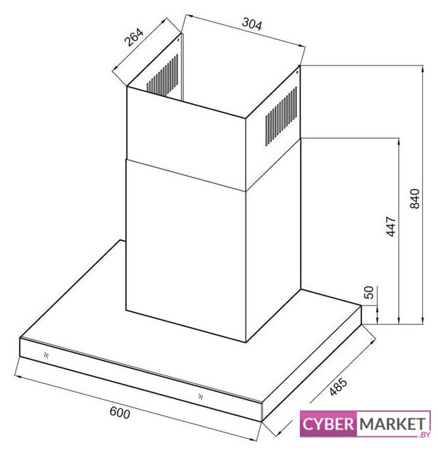 конструкция наклонная, монтаж настенный, ширина 59.5 см, управление сенсорное, производительность мотора 710 м³/ч, цвет белый