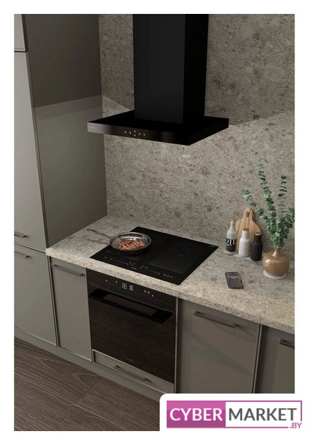 конструкция скрытая, монтаж для встраивания, ширина 85 см, управление сенсорное, цвет черный