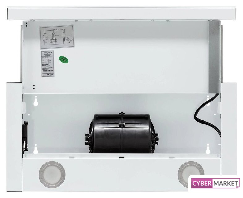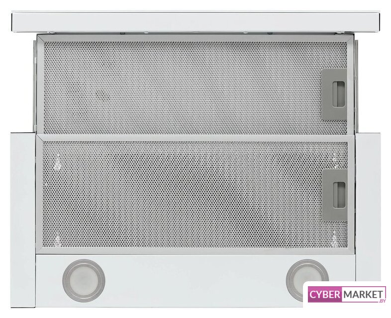 конструкция скрытая, монтаж для встраивания, ширина 59.8 см, управление сенсорное/жестами, производительность мотора 1020 м³/ч, цвет белый