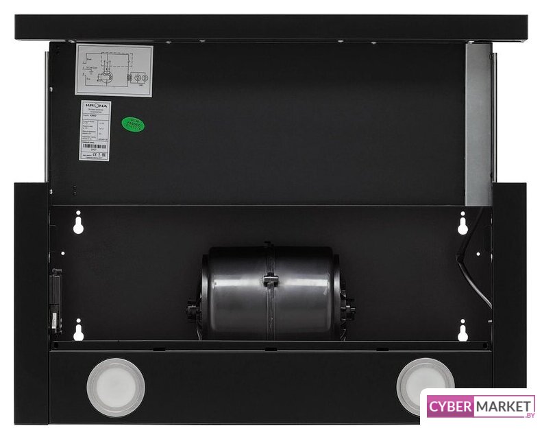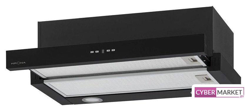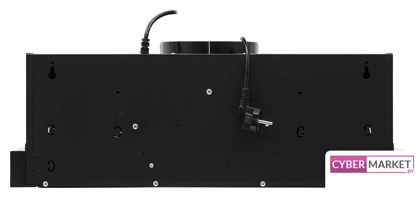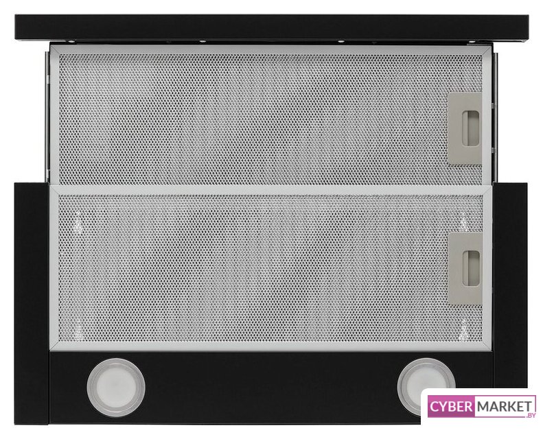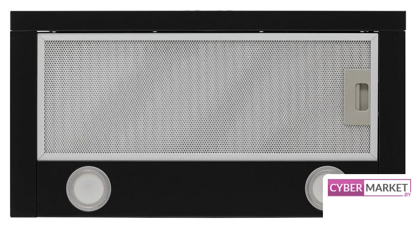 конструкция наклонная, монтаж настенный, ширина 59 см, управление механическое/кнопочное, производительность мотора 430 м³/ч, цвет черный